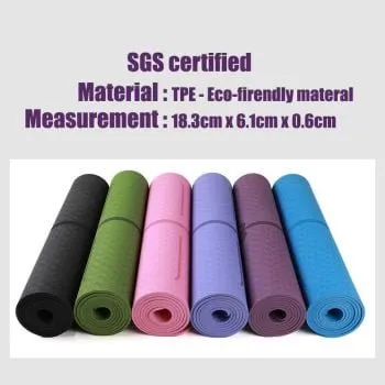 This TPE Body Aligning Yoga Mat is made of technologically improved TPE (Thermoplastic Elastomers), which are generally low modulus, flexible materials that can be stretched repeatedly providing superior durability. TPE is more eco friendly and is the new standard for yoga mats.